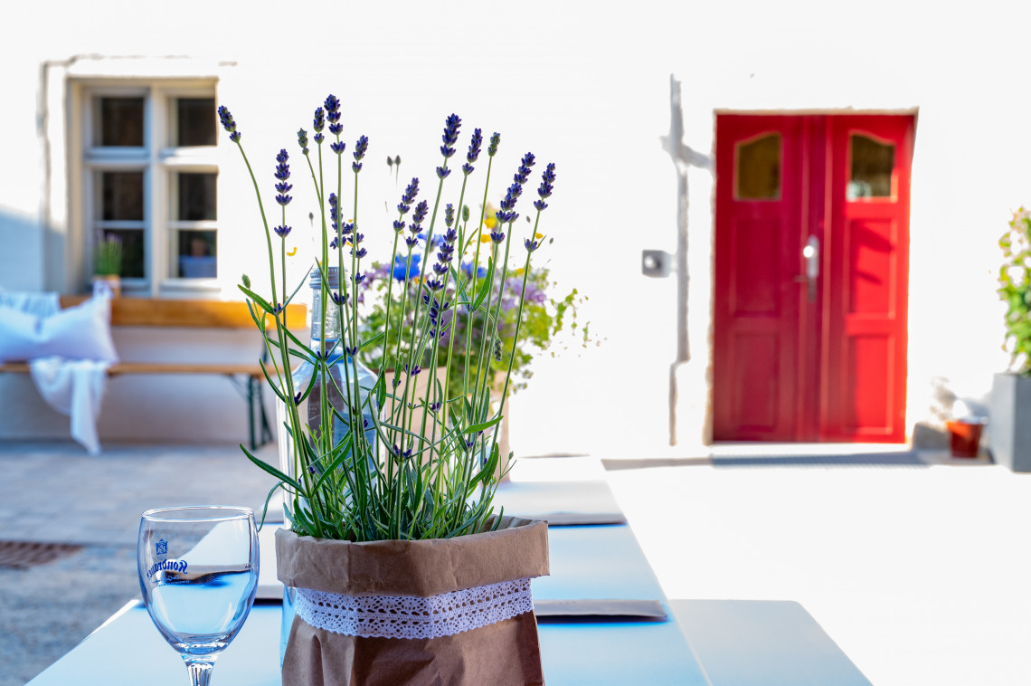 Im Anschluss können Sie unter der Remise und Innenhof des denkmalgeschützten Dreiseithofes Ihren Sektempfang abhalten.