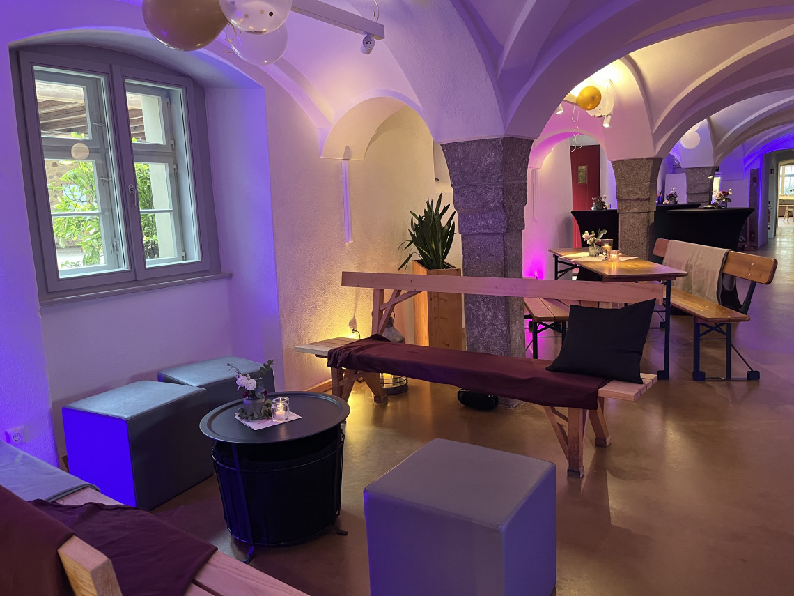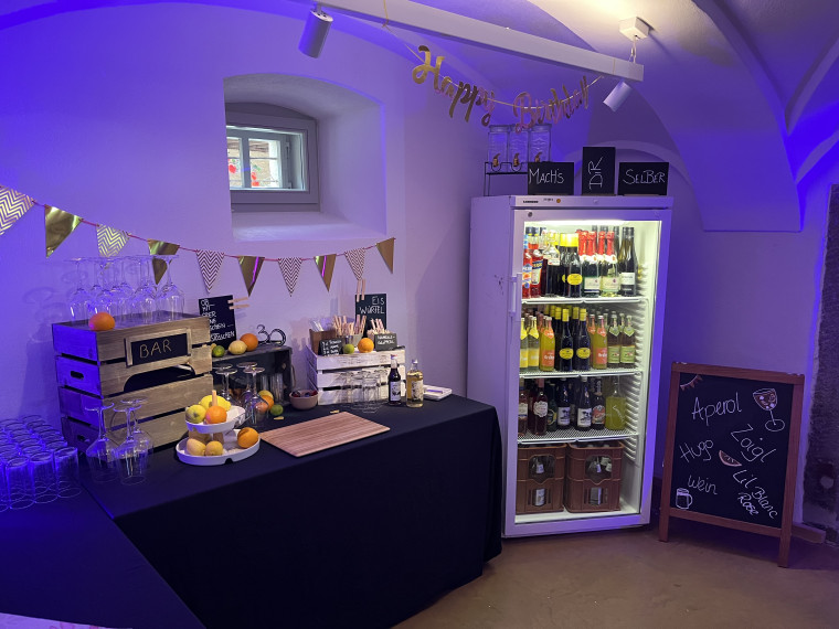 Der Gewölbesaal mit kleiner Küche ist der ideale Ort für Ihre Feier mit bis zu 68 Personen in familiärer Atmosphäre.