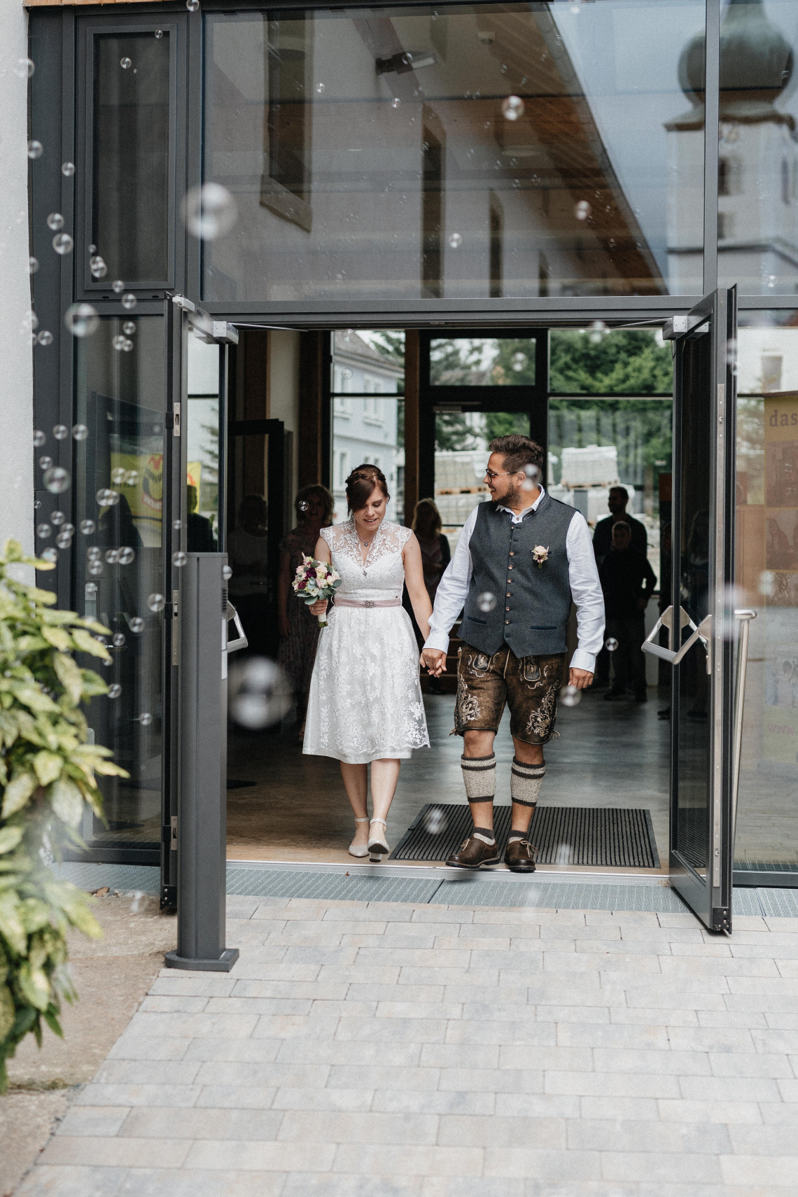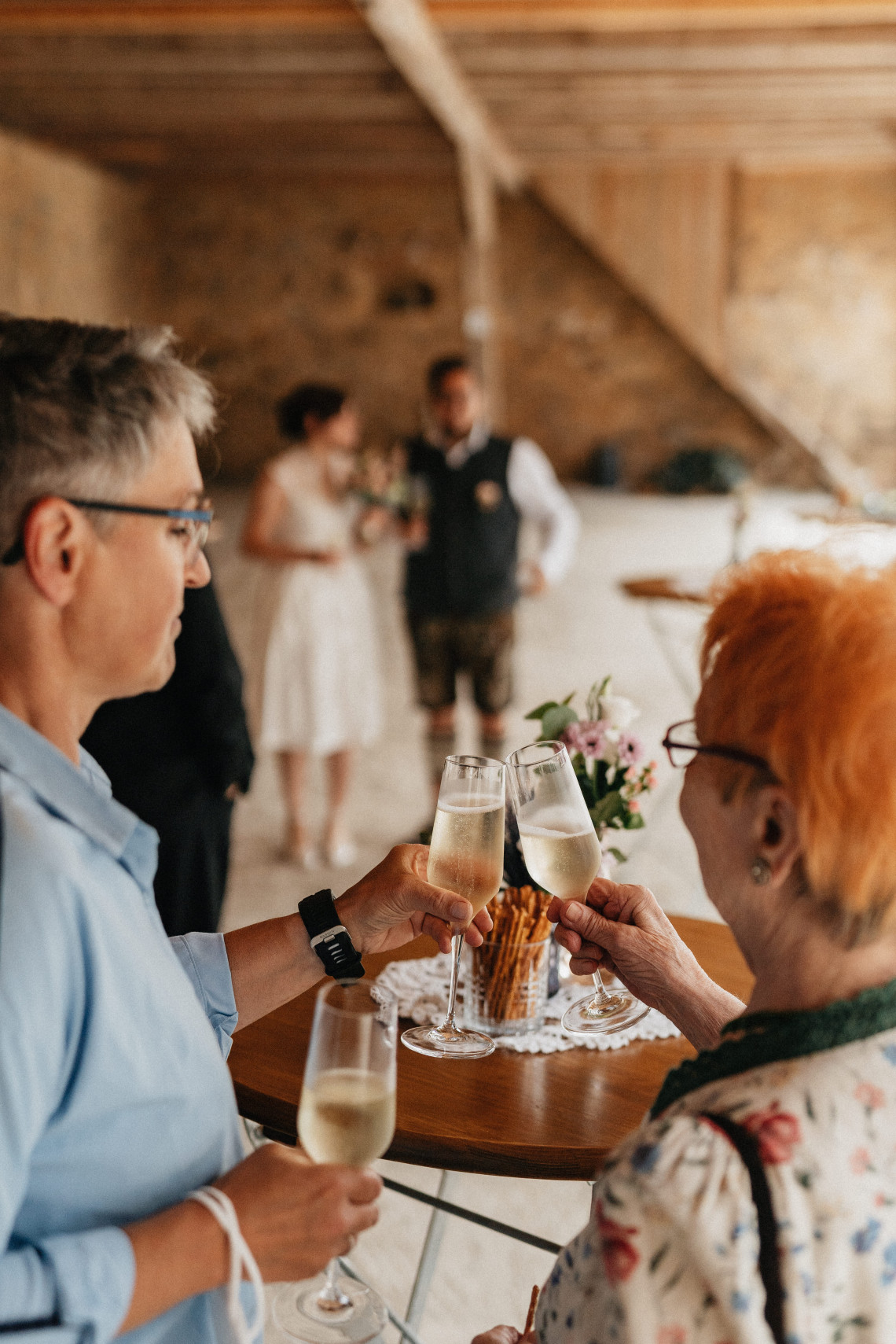 Im Anschluss können Sie unter der Remise und Innenhof des denkmalgeschützten Dreiseithofes Ihren Sektempfang abhalten.